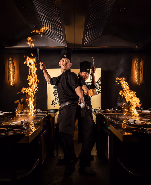 Formés aux techniques ancestrales, nos chefs teppanyaki transforment chaque repas en véritable spectacle. Autour d’une plaque chauffante, les convives assistent en direct à la préparation de plats d’exception, entre performance culinaire et interaction gourmande.